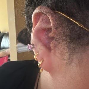 Matthew Solid metal, does not irritate my ear, matched the description. I bought the second piece, I’ll eventually move the snake to my lower lobe and put the tail in my upper lobe, but she’s still healing. 10/10 would recommend. :)
